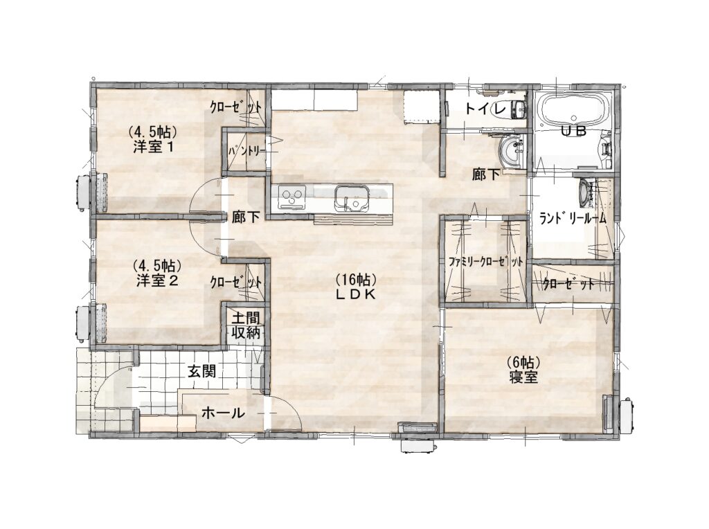 家族思いの安らぎ3LDK | 平屋工務店|鳥取・倉吉・米子・松江・出雲・浜田・益田の新築ローコスト平屋住宅専門店